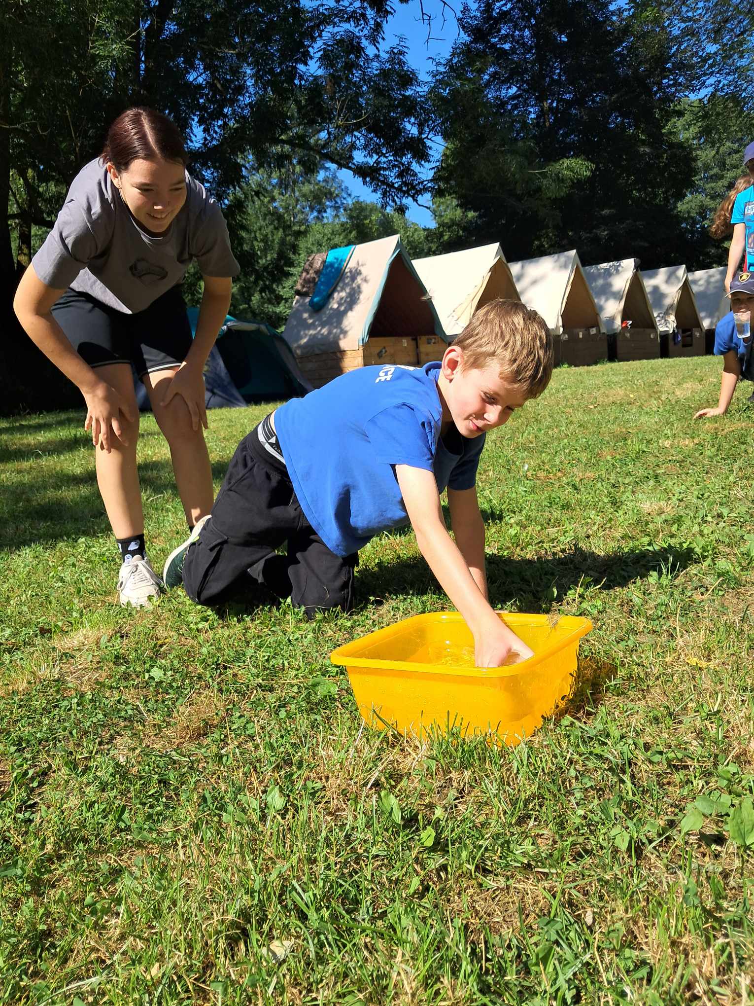 Následovala hra, kde prvním úkolem bylo na táboře najít všechny vlajky tzv. vlajkové abecedy. Pomocí ni jsme dešifrovali hadanku, která nás má dovést k místu, na kterém je poklad ukryt. Hádanka byla: "Koruna bez hlavy, bez jazyka rozpráví, necítí, nežije, přece mu srdce bije".